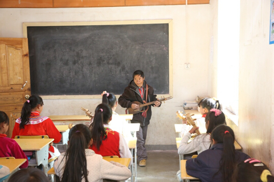 提起是不是為了傳承民族文化而選擇教孩子們四弦琴,何盛偉忽然不好意思地笑笑,他說(shuō)自己也沒想那么多,就是覺得有更多的人會(huì)彈四弦琴,有更多的人能聽到四弦琴,他就覺得高興。