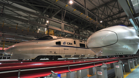12月25日凌晨,貴廣高鐵動車?吭谫F陽北火車站動車基地,蓄勢待發(fā)。 全長857公里的貴(陽)廣(州)高鐵將于12月26日正式開通運(yùn)營,貴陽至廣州的列車運(yùn)行時間將由原來的20小時縮短至4小時。