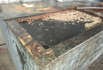 在中器環(huán)保的地溝油收集池中,臟臭的地溝油被集納起來(lái)等待處置,走進(jìn)這個(gè)大廳,一股濃烈的異味撲面而。周琳/攝 |