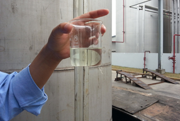 記者在位于上海市星火開發(fā)區(qū)的中器環(huán)?吹,預(yù)處理間有數(shù)個(gè)放置地溝油的大池子,油品顏色深、黏稠,走進(jìn)去就能聞到濃濃的異味;而在經(jīng)過(guò)預(yù)處理、加工、蒸餾等環(huán)節(jié)后的成品車間,水龍頭中放出的就是可直接用于燃料油的產(chǎn)品,顏色透明,幾乎沒(méi)有氣味。