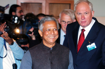 穆罕默德·尤努斯,1940年出生于孟加拉國(guó)吉大港一個(gè)寶石加工場(chǎng)主的家庭。他被廣大國(guó)人所熟知,是因?yàn)樵?006年,他與他創(chuàng)辦的格萊珉銀行(也被稱作孟加拉鄉(xiāng)村銀行)共同榮獲了諾貝爾和平獎(jiǎng)!八麄儚纳鐣(huì)底層推動(dòng)經(jīng)濟(jì)和社會(huì)發(fā)展”,諾貝爾和平獎(jiǎng)評(píng)獎(jiǎng)委員會(huì)曾給出這樣的評(píng)語(yǔ)。