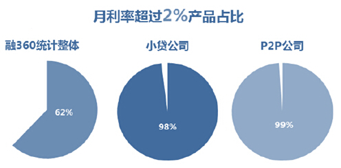 大數(shù)據(jù)清晰顯示,超過6成的小微企業(yè)貸款產(chǎn)品月利率達(dá)2%以上,為62%。在具體的產(chǎn)品分布上,九成以上的小貸公司和p2p平臺(tái)的產(chǎn)品月利率都超過2%,這些機(jī)構(gòu)融資額度不大,門檻也低,但確實(shí)存在融資成本高的問題。這種過高的利率水平危害極為明顯,在經(jīng)濟(jì)下行周期中,將導(dǎo)致小微企業(yè)縮減融資需求,經(jīng)營更加困難。