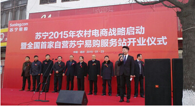 1月23日,蘇寧易購(gòu)首家自營(yíng)服務(wù)站在江蘇省宿遷市洋河鎮(zhèn)正式開業(yè),當(dāng)日,鹽城市龍岡鎮(zhèn)的服務(wù)站也開門迎客,兩家自營(yíng)服務(wù)站的開業(yè)標(biāo)志著蘇寧農(nóng)村電商發(fā)展進(jìn)入自營(yíng)跟加盟兩種模式共同發(fā)展階段,縣鎮(zhèn)網(wǎng)絡(luò)建設(shè)布局也全面加速。