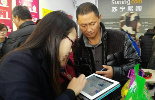 今年52歲的老李告訴筆者,以前買個(gè)熱水器都要跑到幾十里外的宿遷城區(qū),好不容易找人運(yùn)回家后又不會(huì)安裝,跑來跑去都要折騰好幾天。幾經(jīng)尋問,老李打開了話匣子:“我們這一輩人沒學(xué)過拼音,短信都不會(huì)發(fā)就更別提什么這端那端的了,F(xiàn)在很多大廠家這些智能的東西咱都不會(huì)用,我在深圳打工的時(shí)候看到人家城里人在手機(jī)端點(diǎn)幾下就有那個(gè)叫火箭哥的把貨送到家門口。我那時(shí)就想什么時(shí)候我家媳婦也能享受享受呢。沒想到這個(gè)愿望這么快就實(shí)現(xiàn)了!痹谔K寧員工的幫助下,老李通過蘇寧易購(gòu)客戶端一下子買上萬(wàn)塊錢的商品。用老李的話:“我活了大半輩子了第一次發(fā)現(xiàn)原來買家電這么方便!