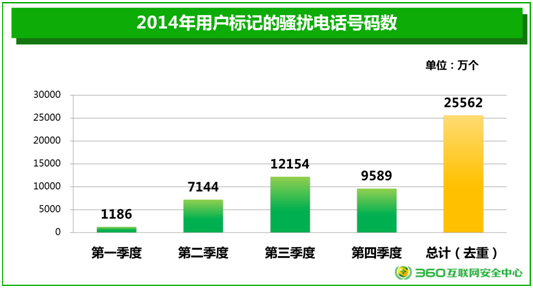 圖二:2014年用戶標記騷擾號碼高達2.56億個