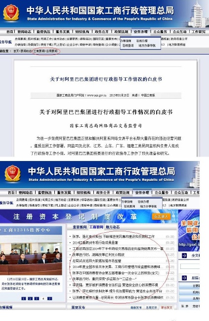 今天上午,國(guó)家工商總局網(wǎng)站掛出《關(guān)于對(duì)阿里巴巴集團(tuán)進(jìn)行行政指導(dǎo)工作情況的白皮書(shū)》。白皮書(shū)顯示,2014年7月,工商總局網(wǎng)監(jiān)司與阿里主要負(fù)責(zé)人及管理團(tuán)隊(duì)進(jìn)行座談,指出阿里系網(wǎng)絡(luò)交易平臺(tái)的問(wèn)題,阿里接受了工商總局的行政指導(dǎo)。