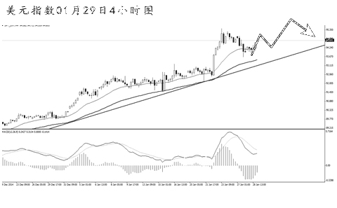 美元指數(shù)小幅下調(diào)后再現(xiàn)多頭力度。日線圖本周初連續(xù)收出陰線,價格向上升趨勢線一帶靠近。由于上方近期并沒有明顯的阻力,上漲空間仍然廣闊。4小時圖均線系統(tǒng)依托排列,上漲主趨勢延續(xù)。短線只要美元指數(shù)不跌破趨勢線的支撐,后市仍有重新走強的希望。關注前方高點95.45,預計美元指數(shù)將緩步向此位置發(fā)起沖擊。