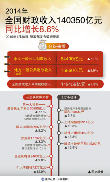 在去年一般公共財政收入的140350億元中,稅收收入119158億元。2013年,稅收收入為110497億元,稅收收入增長有限。