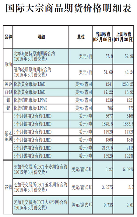 國(guó)際大宗商品期貨價(jià)格明細(xì)表[2015-2-9]