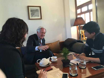 本報(bào)記者正在采訪羅蘭·貝格?悼