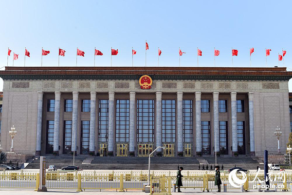 3月1日,2015年全國兩會即將召開。當日,北京風和日麗,藍天空氣質(zhì)量好,北京天安門廣場、人民大會堂,紅旗迎風招展,喜迎全國兩會開幕。