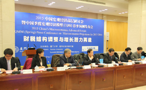 廈門大學(xué)與新華社《經(jīng)濟參考報》3月1日在京聯(lián)合舉行了“2015中國宏觀經(jīng)濟高層研討會暨中國季度宏觀經(jīng)濟模型(CQMM)2015年春季預(yù)測報告發(fā)布會”,并發(fā)布了“中國宏觀經(jīng)濟形勢與政策問卷調(diào)查”。報告預(yù)測,2015年受房地產(chǎn)投資萎縮的影響,中國經(jīng)濟增長減速的態(tài)勢仍將繼續(xù),預(yù)計全年GDP增速為7.14%。與會專家建議,2015年應(yīng)把總量減稅作為財政體制改革的一個重要選項,通過制度性全面減稅,降低國民經(jīng)濟總稅負,進而刺激居民消費和私人投資的增長,再造中國經(jīng)濟增長潛力。