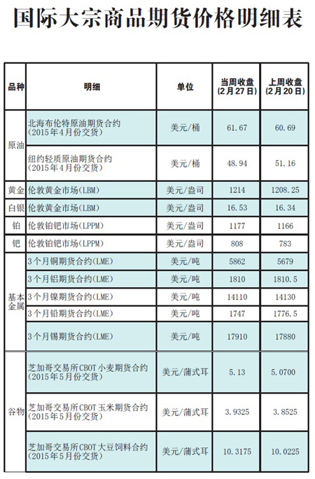 國(guó)際大宗商品期貨價(jià)格明細(xì)表[2015-3-2]