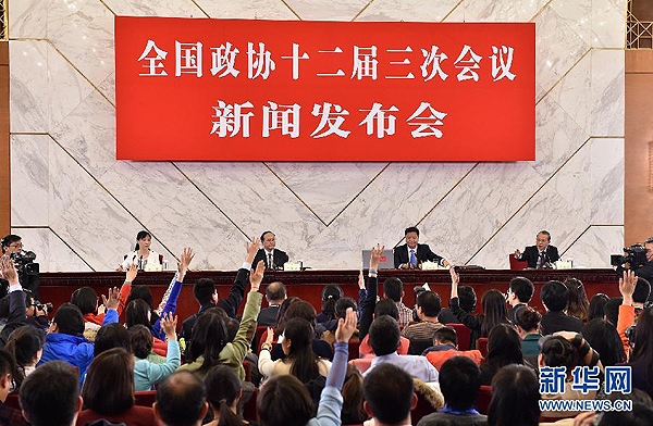 3月2日,全國(guó)政協(xié)十二屆三次會(huì)議新聞發(fā)布會(huì)在北京人民大會(huì)堂舉行,大會(huì)發(fā)言人呂新華介紹會(huì)議有關(guān)情況并回答中外記者提問(wèn)。