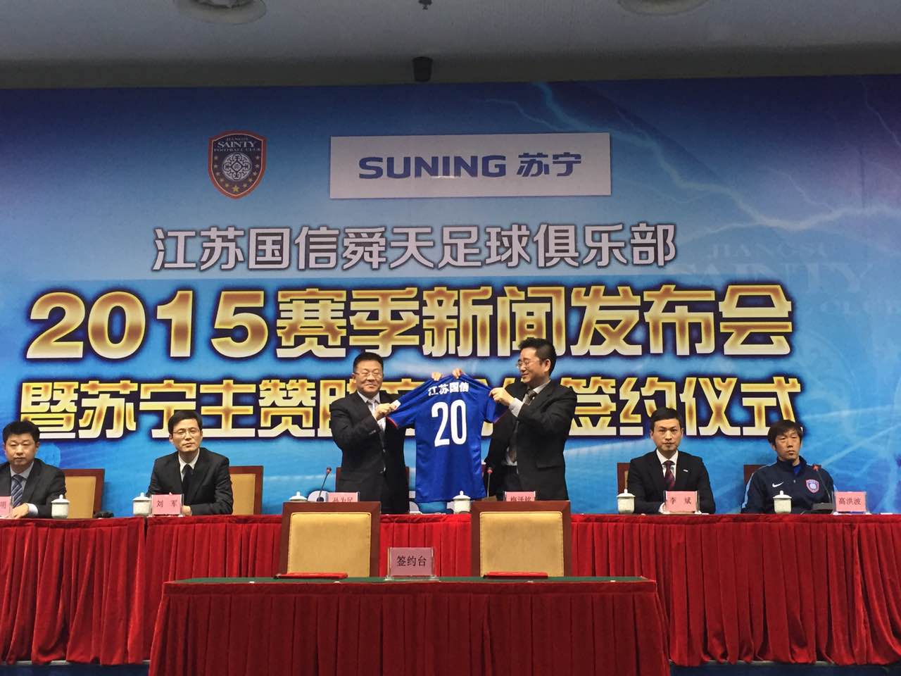 3月3日,從江蘇國(guó)信舜天足球俱樂部2015賽季新聞發(fā)布會(huì)傳出重磅消息:蘇寧正式簽約成為江蘇國(guó)信舜天足球俱樂部2015年的主贊助商,旗下快速發(fā)展的電子商務(wù)平臺(tái)蘇寧易購(gòu)拿下了江蘇國(guó)信舜天球衣胸前廣告,雙方將在基礎(chǔ)贊助資金投入、商業(yè)運(yùn)營(yíng)、球隊(duì)、粉絲文化建設(shè)、青訓(xùn)梯隊(duì)培養(yǎng)等領(lǐng)域開展全面合作。這是繼去年6月成為足球豪門巴塞羅那俱樂部中國(guó)區(qū)官方合作伙伴之后,蘇寧再度發(fā)力足球產(chǎn)業(yè)。