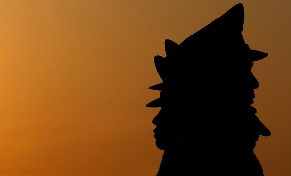 升旗儀式上的國(guó)旗護(hù)衛(wèi)隊(duì)剪影。
