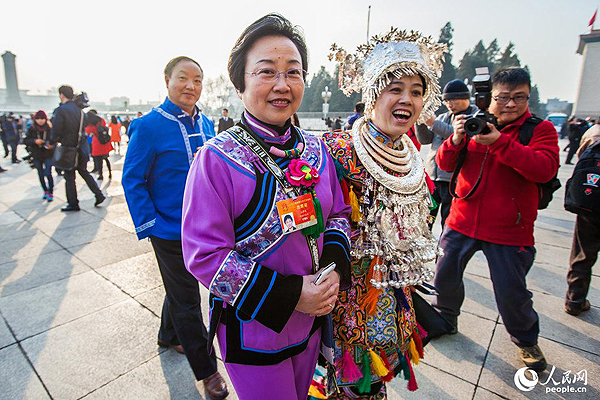 2015兩會(huì):少數(shù)民族代表盛裝出席會(huì)議