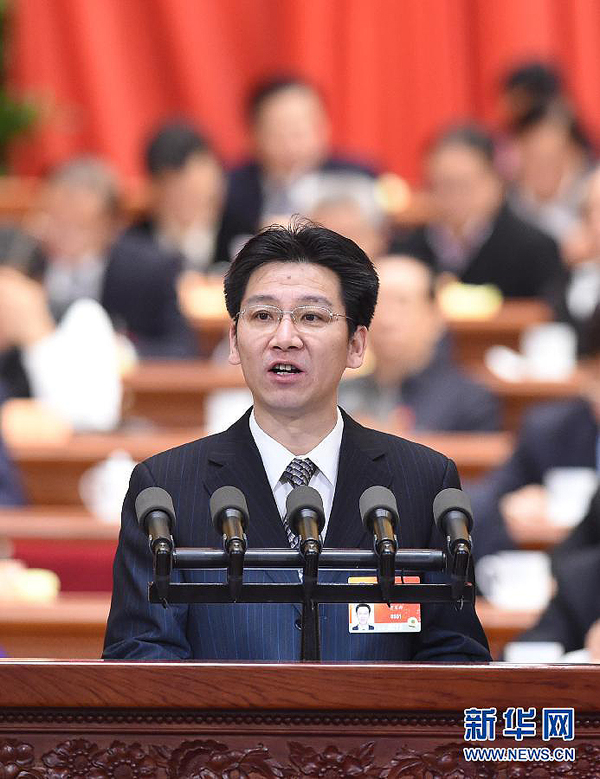 3月10日,全國政協(xié)十二屆三次會議在北京人民大會堂舉行第三次全體會議。這是賀軍科委員代表共青團(tuán)中央、全國青聯(lián)作《加快社工隊伍建設(shè)為困境青少年成長提供專業(yè)服務(wù)》的發(fā)言。新華社記者 王曄 攝
