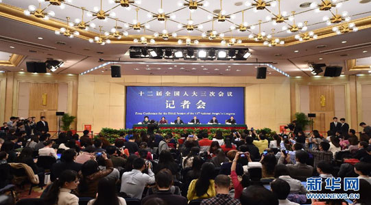 3月12日,十二屆全國人大三次會(huì)議新聞中心舉行記者會(huì),邀請(qǐng)中國人民銀行行長(zhǎng)周小川,中國人民銀行副行長(zhǎng)、國家外匯管理局局長(zhǎng)易綱,中國人民銀行副行長(zhǎng)潘功勝,絲路基金有限責(zé)任公司董事長(zhǎng)金琦就“金融改革與發(fā)展”回答中外記者提問。新華社記者 李鑫 攝