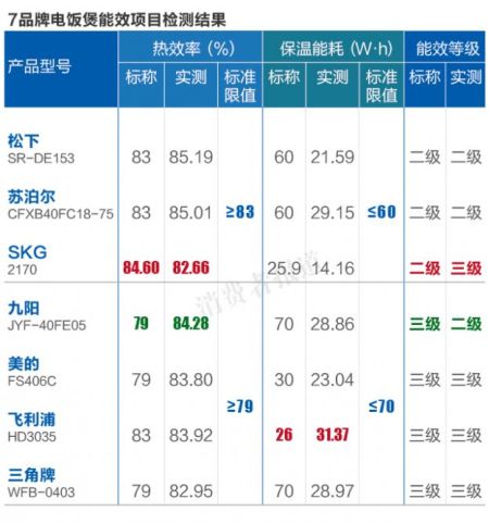 2015年1月,《消費者報道》對占據(jù)市場主流份額的SKG、飛利浦、美的、九陽、蘇泊爾、三角牌和松下等7品牌智能電飯煲的能效項目進行了檢測。結(jié)果顯示,SKG一款標稱為二級能效的電飯煲存在虛標情況;飛利浦電飯煲的實測保溫能耗則與標簽不符。