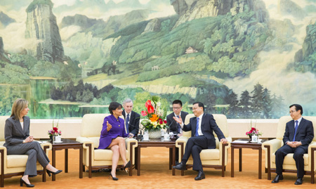 4月13日,國務(wù)院總理李克強(qiáng)在北京人民大會堂會見美國總統(tǒng)代表、商務(wù)部長普里茨克和她率領(lǐng)的“總統(tǒng)貿(mào)易代表團(tuán)”一行。李克強(qiáng)指出,經(jīng)貿(mào)關(guān)系是中美關(guān)系的“壓艙石”,中美經(jīng)濟(jì)高度互補(bǔ),在基礎(chǔ)設(shè)施、能源、信息、環(huán)保等諸多領(lǐng)域擁有廣闊合作空間。李克強(qiáng)希望雙方加快推進(jìn)以準(zhǔn)入前國民待遇和負(fù)面清單管理模式為基礎(chǔ)的雙邊投資協(xié)定談判,盡早談成一個高水平、雙向平衡的協(xié)定,提升兩國貿(mào)易投資合作水平。