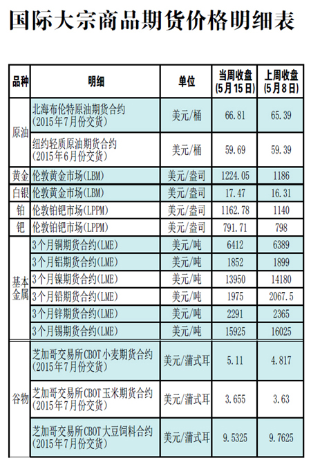 國(guó)際大宗商品期貨價(jià)格明細(xì)表[2015-5-18]