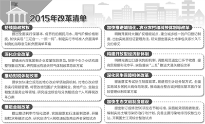 國務院18日批轉了國家發(fā)改委《2015年深化經(jīng)濟體制改革重點工作意見》(簡稱《意見》)。在共計萬余字、涉及39項具體改革內(nèi)容的《意見》全文中,提及改革的有170余處,提及“加快”的有32處。據(jù)《經(jīng)濟參考報》記者統(tǒng)計,包括出租車行業(yè)改革、注冊制、巨災險在內(nèi)的大量在議改革措施已確定年內(nèi)落地。