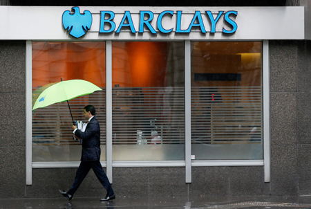 美國和英國的監(jiān)管部門20日表示,已和六家大型跨國銀行達(dá)成總計約58億美元的和解協(xié)議,以了結(jié)其操縱外匯市場的指控。這六家銀行是巴克萊、摩根大通、花旗、蘇格蘭皇家銀行、瑞銀和美國銀行。 圖為一名男子走過英國倫敦市中心的一家巴克萊銀行。