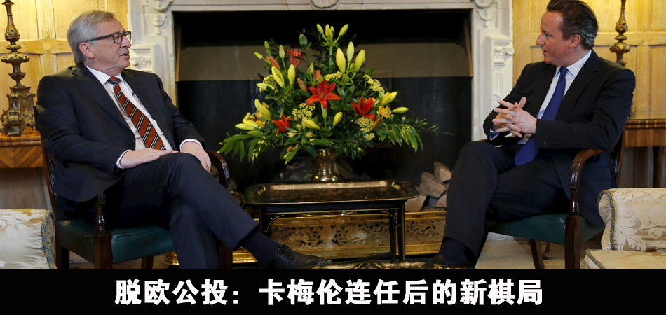 在“內憂外患”的背景下,英國脫歐公投的倡議應運而生。2013年1月23日,英國首相卡梅倫首次提及脫歐公投。今年1月,卡梅倫表示,如果贏得大選,將有可能提前舉行原計劃于2017年進行的公投。在成功連任后,卡梅倫再次承諾,由保守黨領導的新一屆政府將在2017年年底之前舉行全民公投,以決定英國是否退出歐盟。