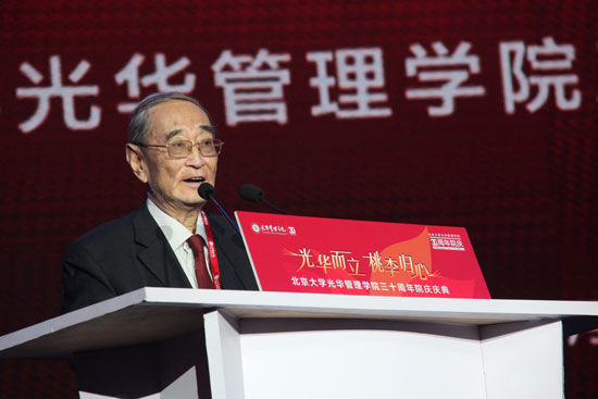 “北京大學(xué)光華管理學(xué)院30周年院慶慶典”于2015年5月30日舉行。北京大學(xué)光華管理學(xué)院名譽(yù)院長厲以寧出席并演講。