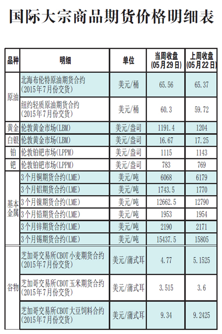 國際大宗商品期貨價格明細表[2015-6-1]