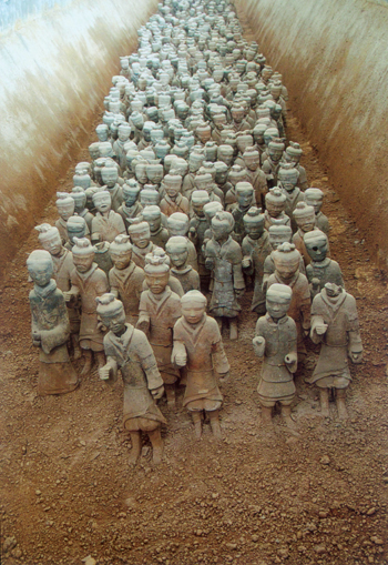 “漢代三絕”之二的漢兵馬俑,出土自徐州漢墓。最早是1984年12月被發(fā)現(xiàn)于徐州市東郊獅子山西麓,為漢第三代楚王劉戊的陪葬品。獅子山漢兵馬俑分布于六條俑坑,總數(shù)4000多件,種類繁多,有官員俑、衛(wèi)士俑、發(fā)辮俑、甲士俑等十余種,是西漢早期楚國(guó)實(shí)戰(zhàn)軍隊(duì)的地下縮影。