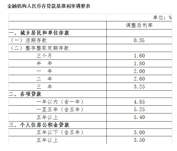 同時,自2015年6月28日起下調(diào)金融機構(gòu)人民幣貸款和存款基準(zhǔn)利率,以進一步降低企業(yè)融資成本。其中,金融機構(gòu)一年期貸款基準(zhǔn)利率下調(diào)0.25個百分點至4.85%;一年期存款基準(zhǔn)利率下調(diào)0.25個百分點至2%;其他各檔次貸款及存款基準(zhǔn)利率、個人住房公積金存貸款利率相應(yīng)調(diào)整。