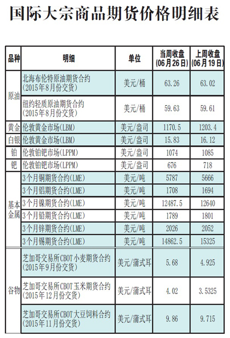 國際大宗商品期貨價(jià)格明細(xì)表[2015-6-29]