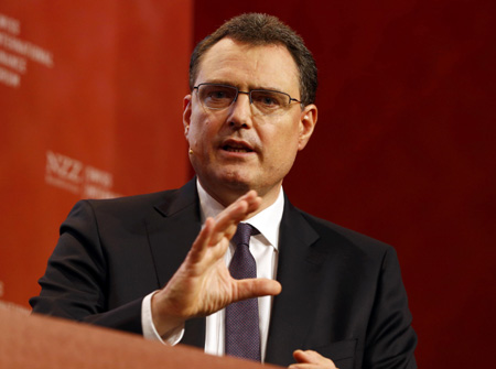 6月29日,在瑞士伯爾尼,瑞士國家銀行行長托馬斯·約爾丹在瑞士國際金融論壇上講話。 瑞士國家銀行(央行)行長托馬斯·約爾丹29日宣布,因瑞士法郎被估值過高,瑞士央行已經(jīng)出手干預(yù)匯市。這是自今年1月瑞郎與歐元脫鉤以來,瑞士央行首次公開干預(yù)匯市。約爾丹承認(rèn),瑞郎走強讓瑞士經(jīng)濟陷入困境,但他認(rèn)為如今看來瑞郎仍有必要與歐元脫鉤。