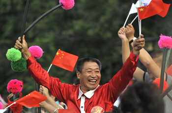 7月31日,在北京市延慶縣望京廣場(chǎng),當(dāng)?shù)鼐用駪c祝北京攜手張家口獲得2022年冬奧會(huì)舉辦權(quán)?!⌒氯A社記者 高健鈞/攝 |