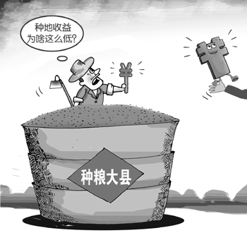 “糧食主銷區(qū)大量發(fā)展工業(yè),而主產(chǎn)縣則因為抓糧食失去了太多發(fā)展機會。用一句話概括就是‘別人吃飯,我們貼錢?!币晃皇茉L副縣長這樣感慨。為了穩(wěn)住糧食面積和產(chǎn)量,這些產(chǎn)糧大縣每年一到春耕、“雙搶”時節(jié),就會出現(xiàn)田里的干部比農(nóng)民還多的景象。政府不僅要多次發(fā)文敦促各鄉(xiāng)鎮(zhèn)落實任務(wù),甚至一些干部還要把農(nóng)民拋荒不愿種的地流轉(zhuǎn)過來自己種?!叭绻淹度爰Z食生產(chǎn)的錢集中起來搞一兩個工業(yè)企業(yè),最多三年時間就賺回來了。”