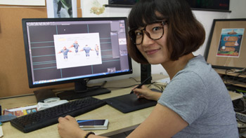 ??? 圖為一位設(shè)計(jì)師在北京“十月動畫工坊”工作室展示電影《大圣歸來》的設(shè)計(jì)稿。記者 吳凱翔 攝 |
