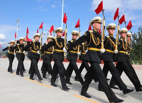 當(dāng)日,17個(gè)來華參閱的外軍方隊(duì)、代表隊(duì)近千名官兵,在北京市郊的閱兵訓(xùn)練基地進(jìn)行緊張而有序的閱兵前訓(xùn)練,記者用手中的相機(jī),記錄下了他們在烈日下嚴(yán)格訓(xùn)練的場景。