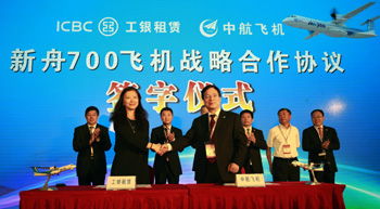 9月16日,工銀租賃與中國(guó)商飛、泰國(guó)都市航空簽署了10架C919和10架ARJ21飛機(jī)采購(gòu)租賃合作諒解備忘錄,成為國(guó)產(chǎn)大飛機(jī)以租賃形式“走出去”的第一單,凸顯金融租賃在“一帶一路”戰(zhàn)略下的新機(jī)遇?!⌒氯A社記者 潘旭/攝 |