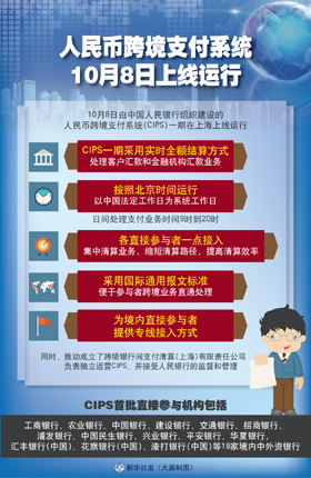 人民幣國(guó)際化進(jìn)程再次迎來(lái)里程碑式事件。10月8日,人民幣跨境支付系統(tǒng)(一期)成功上線運(yùn)行。人民幣跨境支付系統(tǒng)英文簡(jiǎn)稱(chēng)為CIPS,為境內(nèi)外金融機(jī)構(gòu)人民幣跨境和離岸業(yè)務(wù)提供資金清算、結(jié)算服務(wù),是重要的金融基礎(chǔ)設(shè)施,也是人民幣國(guó)際化的有力支撐點(diǎn)。