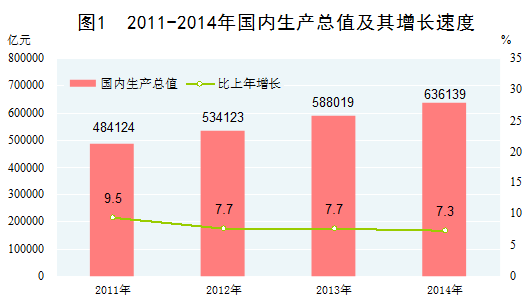 經(jīng)濟(jì)總量穩(wěn)居世界第二位。繼2009年超過日本成為世界第二大經(jīng)濟(jì)體后,我國經(jīng)濟(jì)總量穩(wěn)步攀升,2014年達(dá)到636139億元,折合10.4萬億美元,占世界的份額達(dá)到13.3%,比2010年提高4.1個(gè)百分點(diǎn)。我國經(jīng)濟(jì)對世界經(jīng)濟(jì)復(fù)蘇作出了重要貢獻(xiàn),2011-2014年對世界經(jīng)濟(jì)增長的貢獻(xiàn)率超過四分之一。