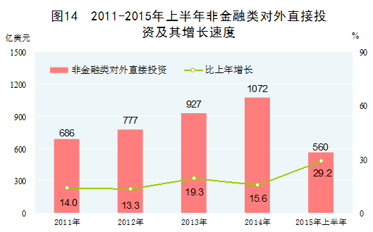 “走出去”戰(zhàn)略加快實(shí)施。對外投資進(jìn)入加速發(fā)展階段,沿海開放、沿邊開放展現(xiàn)新格局。2014年,非金融類對外直接投資1072億美元,比2010年增長78.1%,年均增長15.5%,2015年上半年非金融類對外直接投資同比增長29.2%。2014年,對外承包工程業(yè)務(wù)完成營業(yè)額1424億美元,比2010年增長54.5%,年均增長11.5%。自貿(mào)區(qū)建設(shè)取得重要突破,2013年我國在上海設(shè)立了首個(gè)自由貿(mào)易園區(qū),此后又新設(shè)廣東、天津、福建自由貿(mào)易園區(qū);與冰島、瑞士自貿(mào)區(qū)啟動(dòng)實(shí)施,中韓、中澳自貿(mào)區(qū)完成實(shí)質(zhì)性談判。積極推進(jìn)絲綢之路經(jīng)濟(jì)帶和21世紀(jì)海上絲綢之路合作建設(shè),參與境外基礎(chǔ)設(shè)施建設(shè)和產(chǎn)能合作,在鐵路、電力、通信、油氣等領(lǐng)域?qū)ν夂献魅〉弥匾晒?/span>