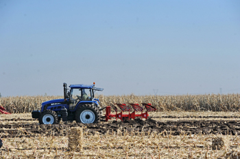 10月14日,一臺(tái)土地深松機(jī)在吉林省榆樹市環(huán)城鄉(xiāng)萬龍村的田間作業(yè)?!⌒氯A社記者 張楠/攝