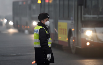 12月1日,一名戴口罩的交警在北京宣武門路口執(zhí)勤?!⌒氯A社記者 陳曄華/攝 |