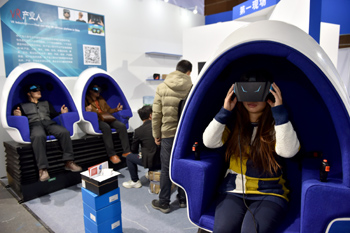 觀眾在科技體驗展上體驗虛擬現(xiàn)實產(chǎn)品?!⌒氯A社記者 李鑫/攝? |
