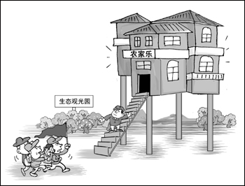在重慶一戶農家樂采訪時,記者看到10多座木質“農家旅舍”環(huán)湖而建,建筑物離地挑空一兩米,使用鋼架作支撐。農家樂負責人說:“之所以要騰空建房,就是因為政策規(guī)定農業(yè)用地不能改變用途,但農旅配套又必須建接待設施,離地挑高建木房風險就較小。”