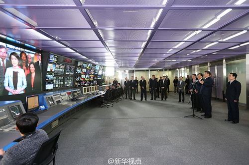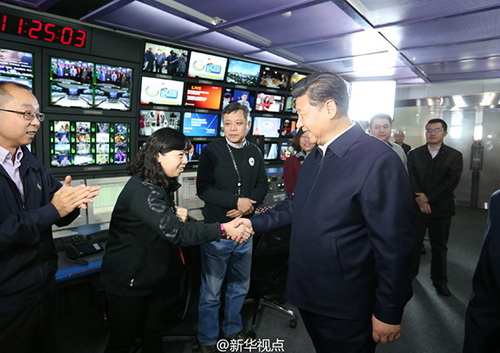 【總書記連線央視北美分臺(tái)】19日上午,習(xí)近平在中央電視臺(tái)調(diào)研,來(lái)到總控中心同位于華盛頓市中心的北美分臺(tái)視頻連線,了解分臺(tái)建設(shè)運(yùn)行情況。當(dāng)?shù)弥峙_(tái)成立4年,每天提供5小時(shí)、全自制的節(jié)目,90%的工作人員來(lái)自當(dāng)?shù)?,?xí)近平對(duì)此表示肯定,向分臺(tái)全體人員致以親切問候和良好祝愿。