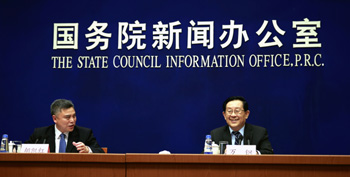 2月24日,國務(wù)院新聞辦公室在北京舉行新聞發(fā)布會,邀請科技部部長萬鋼(右)介紹科技改革和創(chuàng)新發(fā)展有關(guān)情況,并答記者問?!⌒氯A社記者 潘旭/攝 |