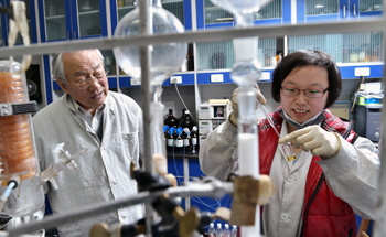 麝香在433種中成藥中廣泛應(yīng)用,卻險(xiǎn)些隨著麝的瀕危而面臨消失。獲得2015年度國(guó)家科技進(jìn)步獎(jiǎng)一等獎(jiǎng)的“人工麝香研制及其產(chǎn)業(yè)化”課題面對(duì)天然麝資源驟減殃及國(guó)藥的困境,尋找到了“無(wú)麝也香”的解決辦法。圖為課題組第一完成人、中國(guó)醫(yī)學(xué)科學(xué)院藥物研究所于德泉院士。? 記者 李賀/攝 |